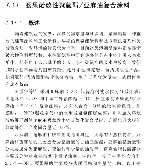 腰果酚改性聚氨酯/亚麻油复合涂料